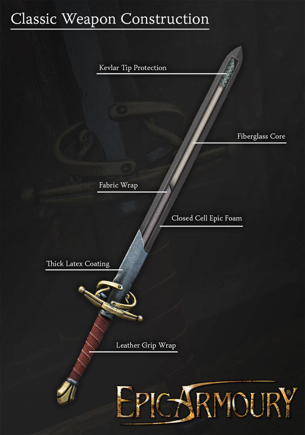 当社の EVA ベースの武器には、エピック フォームとして知られる特別な独立気泡エチレン酢酸ビニル (EVA) が完全に詰められています。これは、2007 年の会社設立以来、当社が注意深く開発、改良してきました。このフォームはブレードとブレードの両方に使用されています。グリップ力があり、着色ラテックスの厚い層で覆われ、シリコンでコーティングされています。当社の Epic Armoury Classic ラインは EVA ベースの構造で構成されており、フォームは特定の形状に切断される前にブロックとして最初に結合されます。
